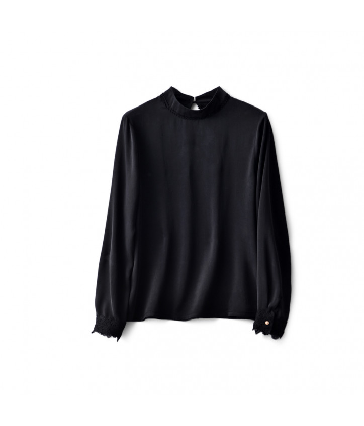 Черная блузка с кружевными вставками