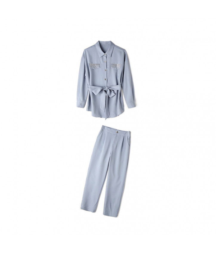 Голубой женский костюм (рубашка + прямые брюки)