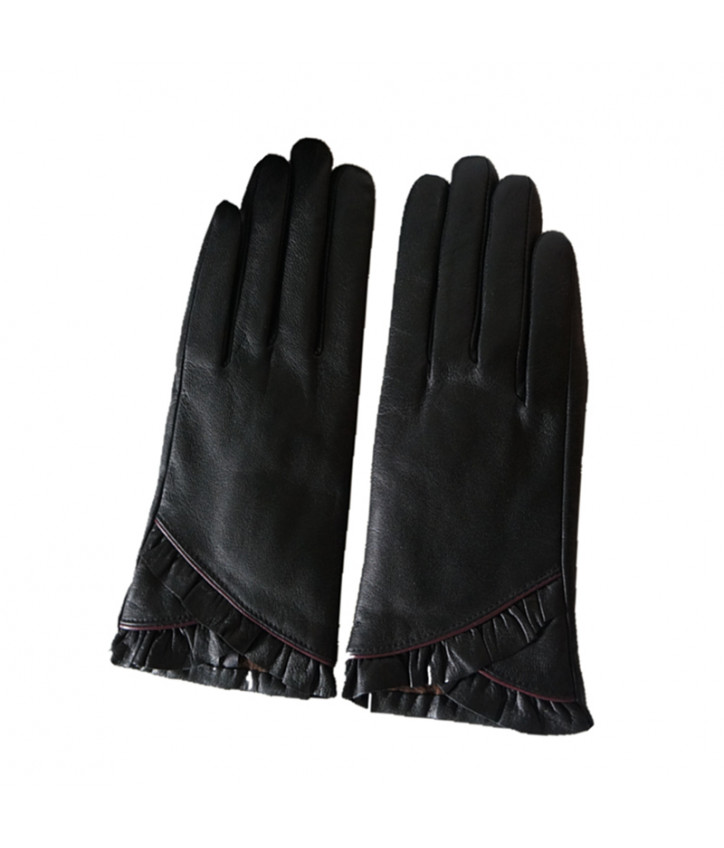 Кожаные женские перчатки с рюшами