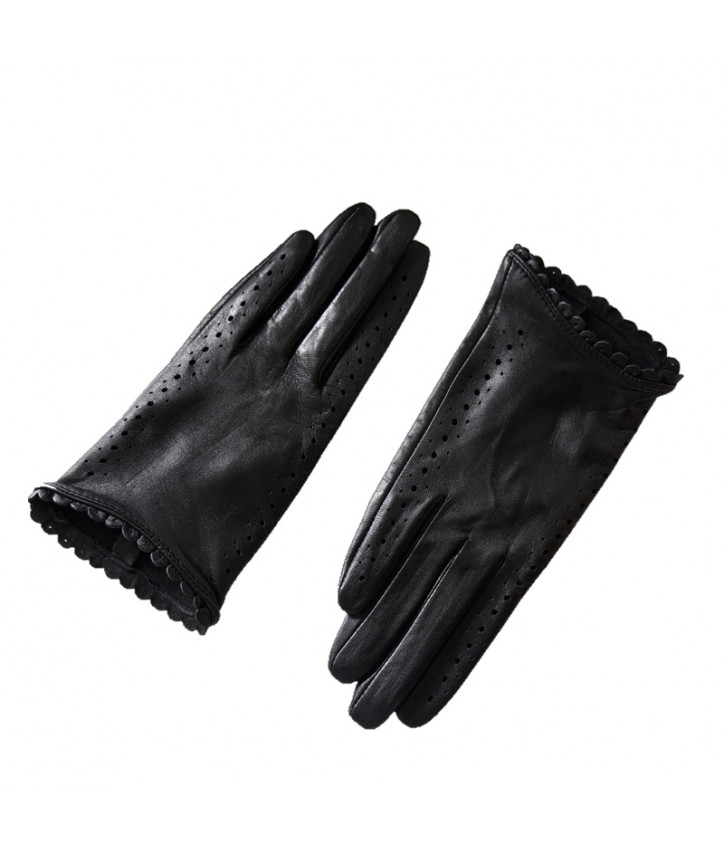 Кожаные женские перчатки с узором