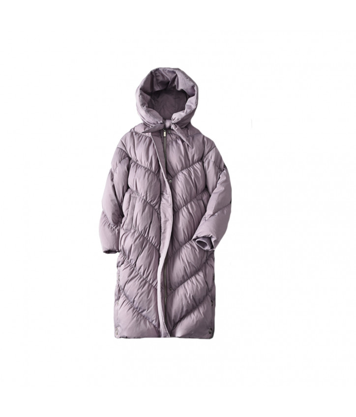 Сиреневый объемный пуховик с капюшоном