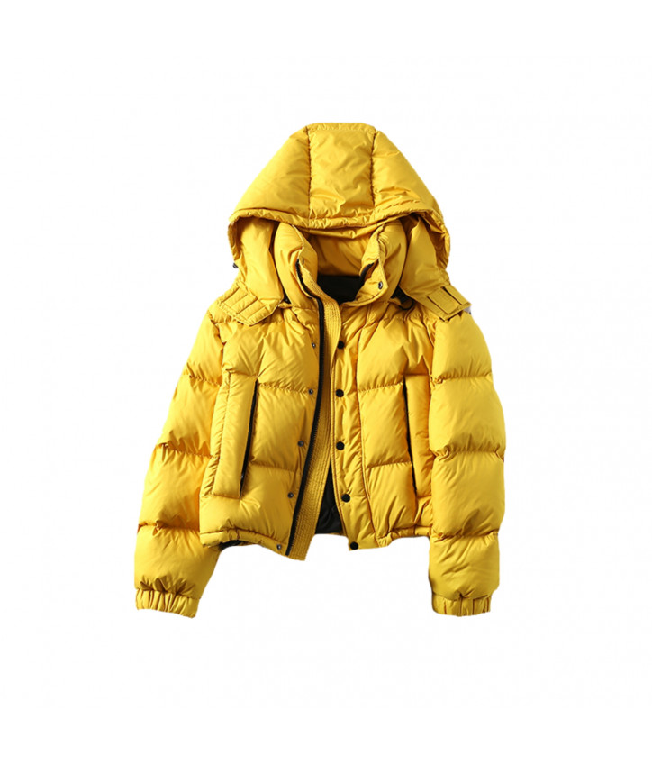 Желтый пуховик с съемным капюшоном